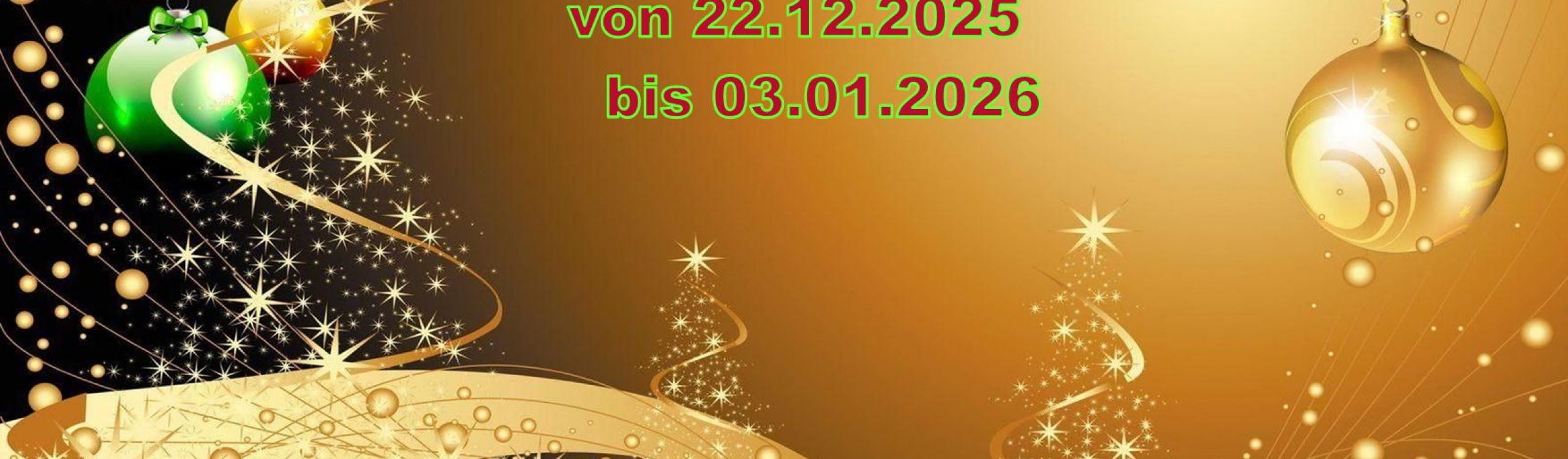 Weihnachtsferien von 22.12.2025 bis 03.01.2026